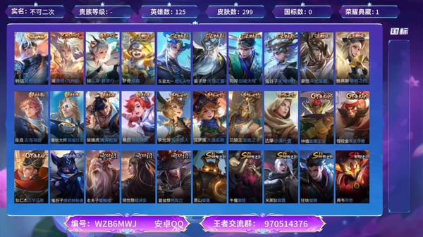 WZB6MWJ,不可二次实名,段位 尊贵铂金II,皮肤 299,英雄 125,防沉迷限制 无防沉迷【逆光代售终身找回包赔5折】
